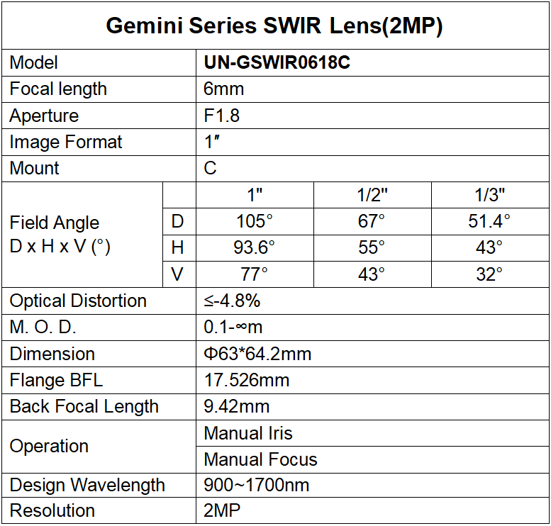 · Wellenlänge: 900-1700m· Große Blende, bis zu F1.4