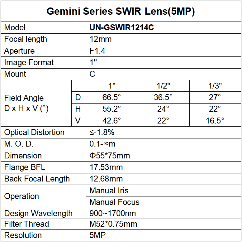 · Wellenlänge: 900-1700m· Große Blende, bis zu F1.4