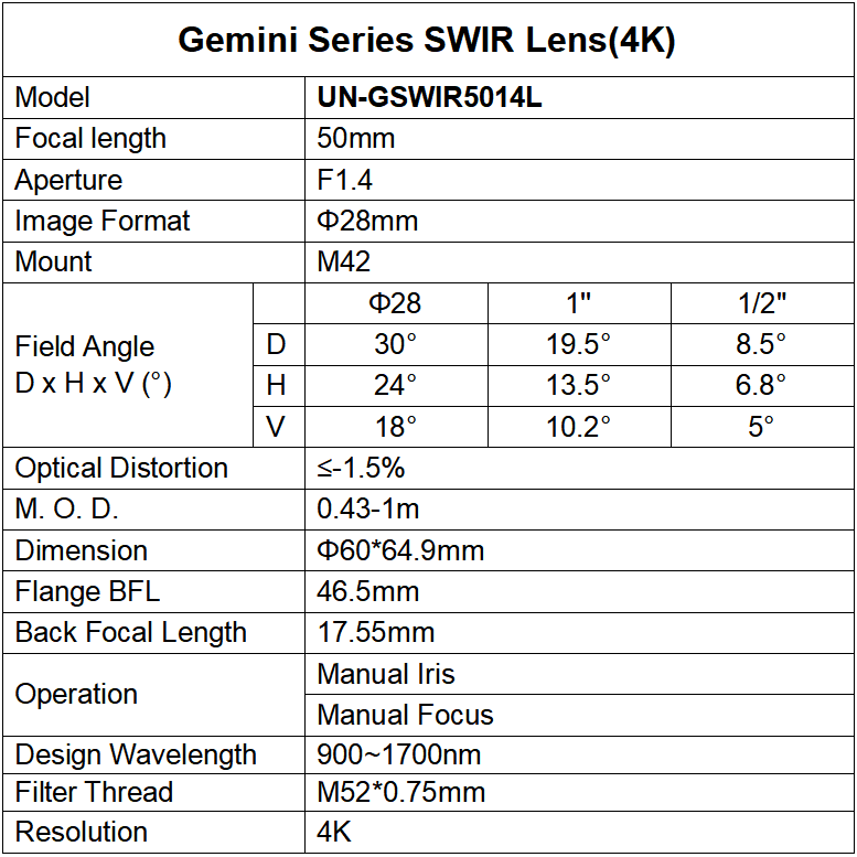 · Wellenlänge: 900-1700m· Große Blende, bis zu F1.4