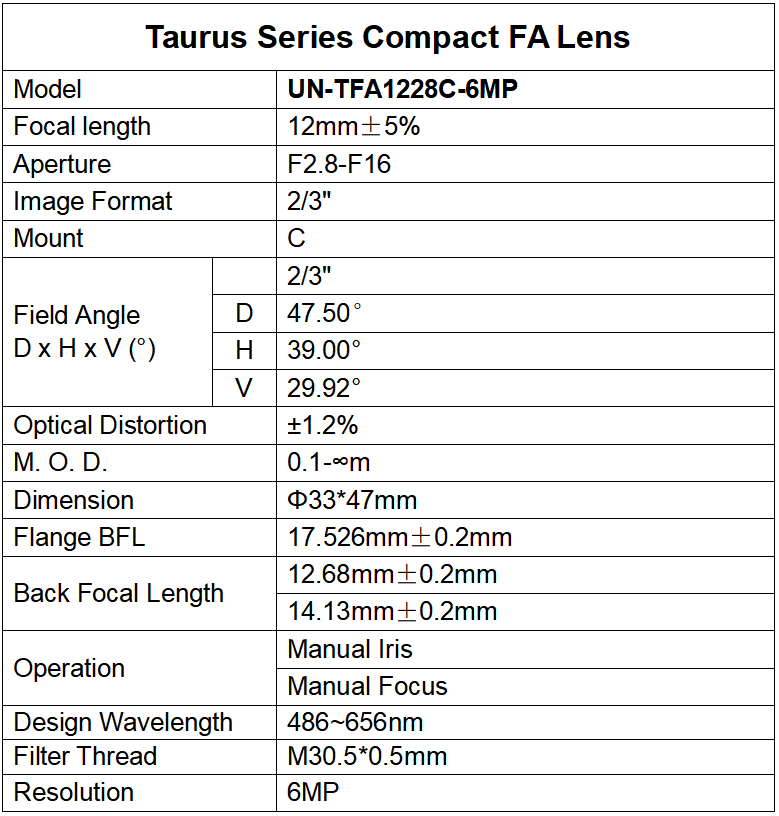 UN-TFA1628C-6MPUrheberrechte © © UNI OPTICS CO., LTD © Alle Rechte vorbehalten.