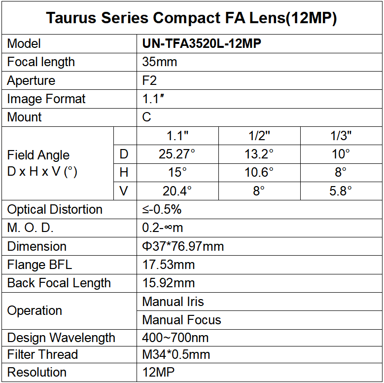 Kompaktes FA- Objektiv der Taurus-  Serie  ( 10 MP)